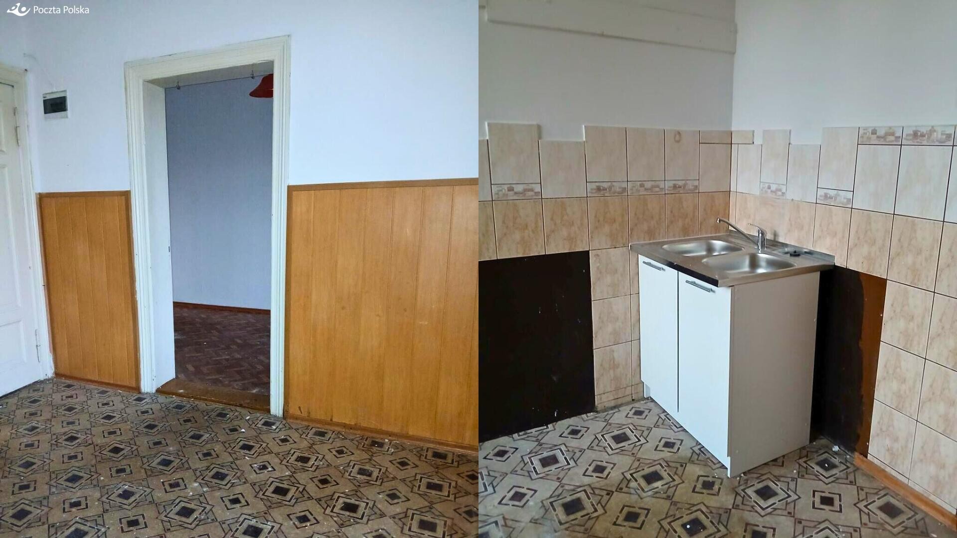 - W budynku na parterze znajduje się placówka pocztowa,